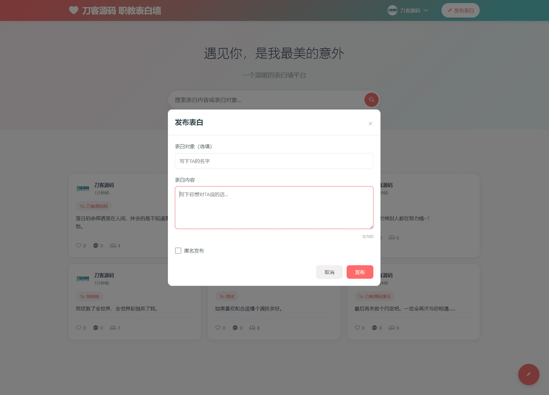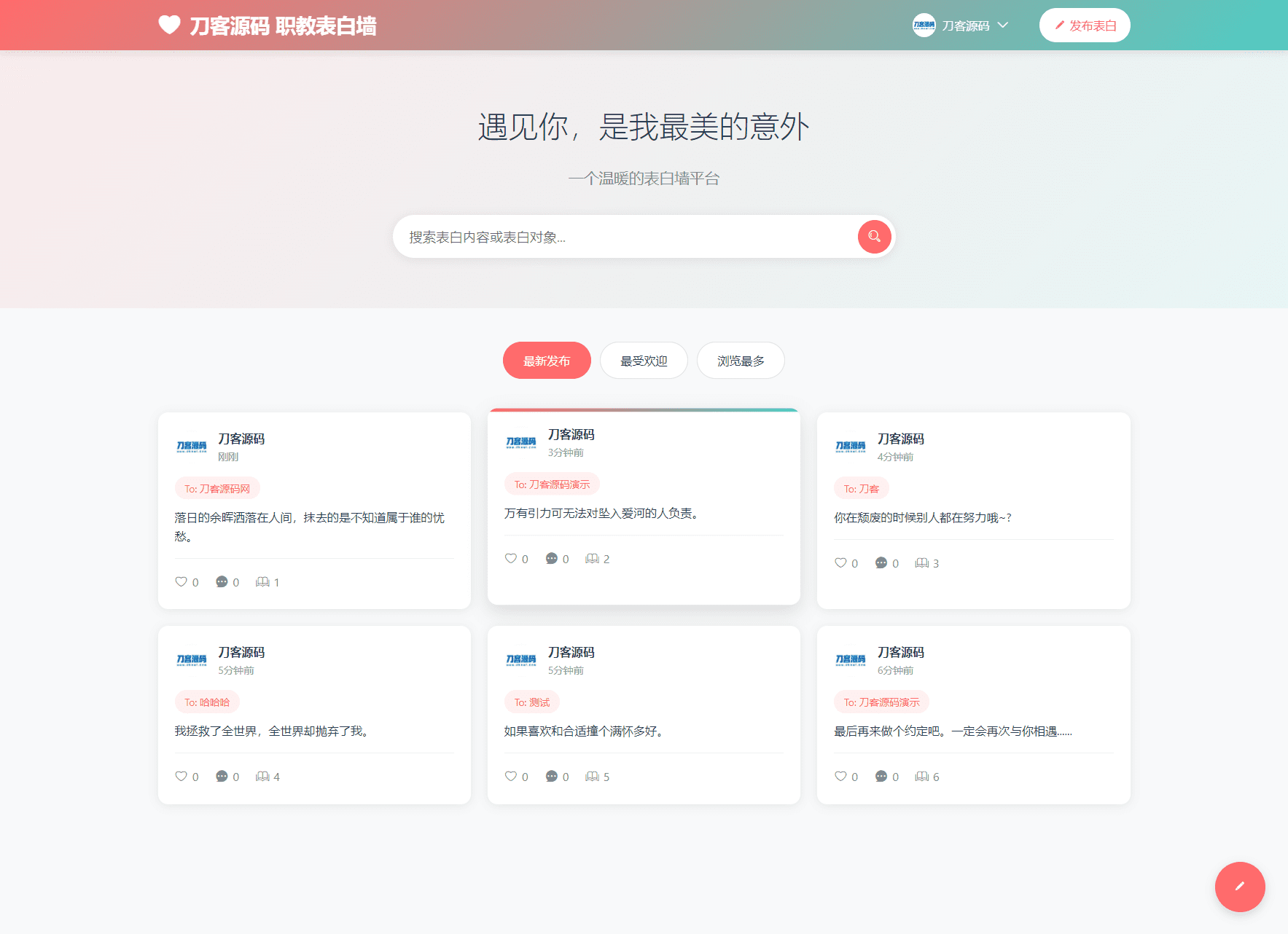 最新轻量美化表白墙系统源码v2.0 带后台版 附搭建教程小灵5天前更新关注09330最新轻量美化表白墙系统源码v2.0 带后台版 附搭建教程此内容为付费资源,请付费后查看8积分朋友会员6家人会员免费登录购买付费资源 简介: 最新轻量美化表白墙系统源码v2.0 带后台版 附搭建教程 更新日志: 增加审核功能,增加了后台管理 增加了用户中心,使用了全新UI界面 图片: © 版权声明 文章版权声明 1、本网站名称:灵思铺子 2、本站永久网址:http://zy.ailingsi.top// 3、本网站的文章部分内容可能来源于网络,仅供大家学习与参考,如有侵权,请联系站长QQ:1049358057进行删除处理。 4、本站一切资源不代表本站立场,并不代表本站赞同其观点和对其真实性负责。 5、本站一律禁止以任何方式发布或转载任何违法的相关信息,访客发现请向站长举报 6、本站资源大多存储在云盘,如发现链接失效,请联系我们我们会第一时间更新。 THE END网站源码 喜欢就支持一下吧点赞30 分享QQ空间微博QQ好友海报分享复制链接收藏